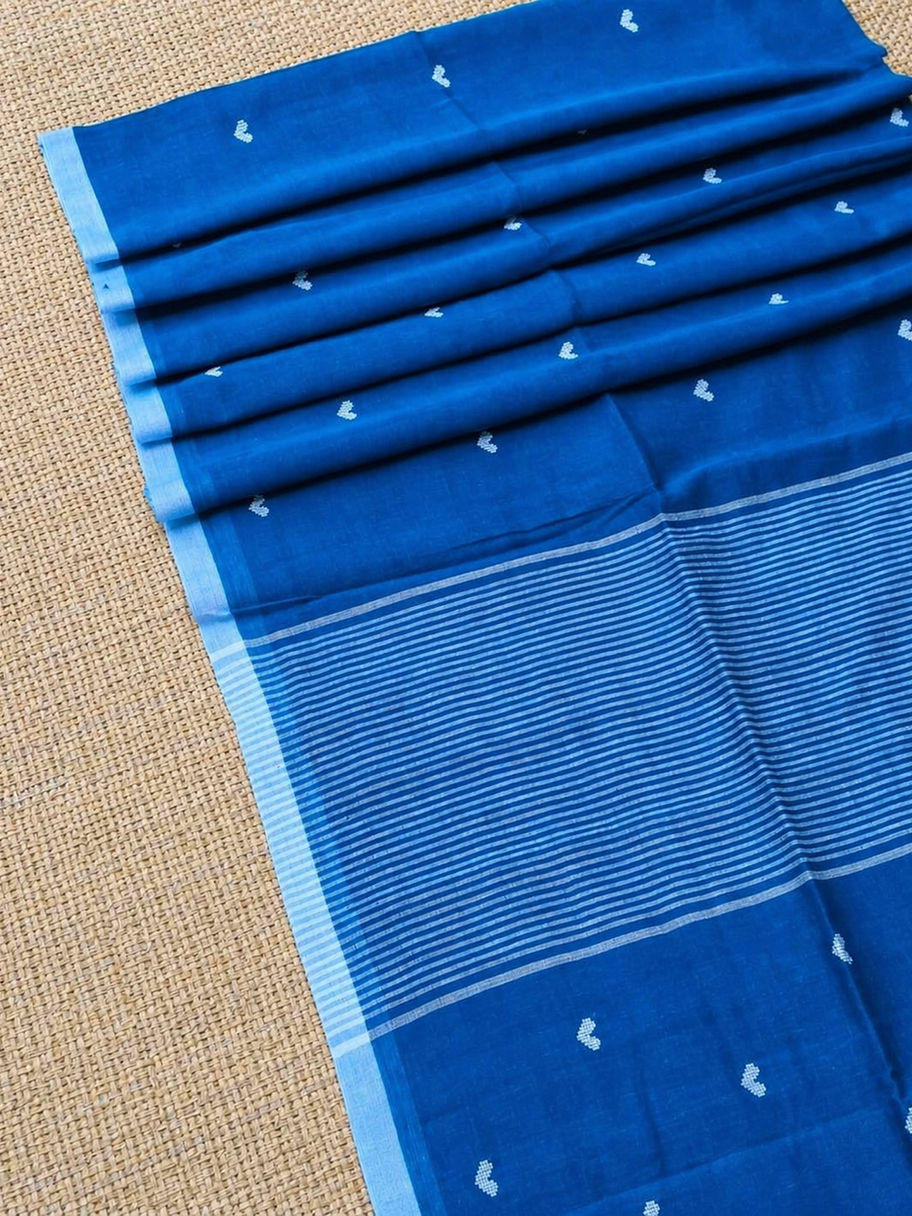 A quiet statement in blue, this pure mul cotton handloom saree brings together comfort and charm effortlessly. Scattered with delicate pixel heart motifs, it feels playful yet understated—perfect for days when you want your style to feel easy, but still thoughtful.