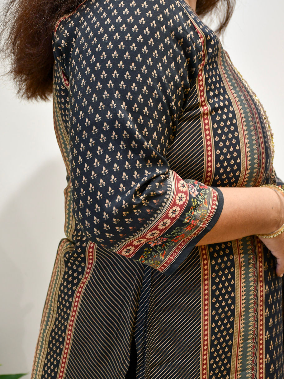 Grace meets comfort in Labdh’s “Kaari Nazakat”, a stunning black printed kurta set crafted from premium modal muslin fabric — soft, lightweight, and effortlessly elegant.