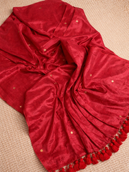 A celebration of quiet elegance, the Rohini Tissue Saree is crafted in soft tissue cotton that carries a gentle, natural shimmer. The rich red hue feels timeless and festive, while remaining easy and wearable for any occasion.